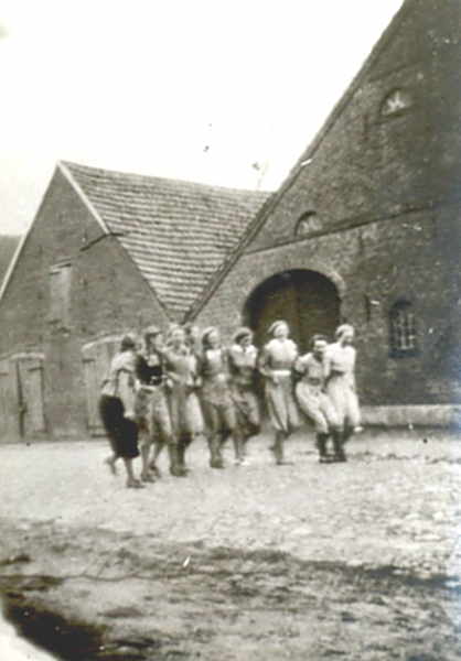 Mädchengruppe, dahinter Hofstelle Theiken „Ümken“