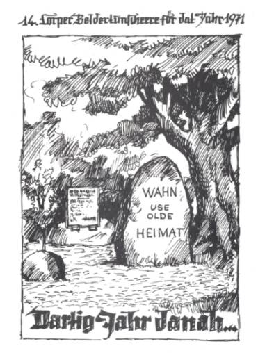 Es ist bei den Älteren noch in bester Erinnerung. 1971 schrieb der Heimatforscher Meyer-Wellmann die 14. Beldertunscheere: „Dartig Jahr dana“. Sie ist den Hümmlingern, besonders aber den Wahnern gewidmet. Auch bei Wahnertreffen zeigen Nachbardörfer durch die Teilnahme noch ihre alte Verbundenheit. Dann wird über alles gesprochen, was das Herz bewegt. Aus tausend Erinnerungen über Freud und Leid. Denn Heimat ist durch Generationen gewachsen. Einige gehen einsam und allein über die alten Kopfsteinstraßen. Sie müssen sich mit dem Gewesenen noch einmal vertraut machen. Alte Bäume, wild aufgewachsene Hecken, ein ausgetretener Türschwellenstein zeigen noch oft die alte Hofstelle an.