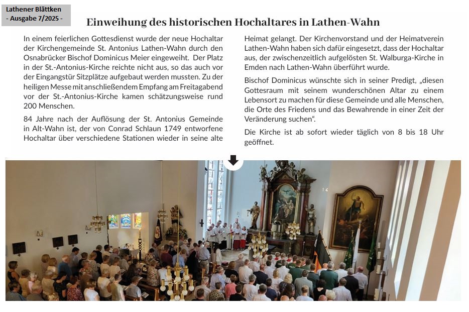 Einweihung des historischen Hochaltares in Lathen-Wahn