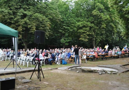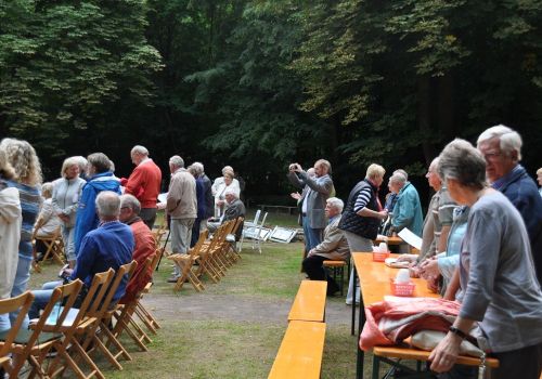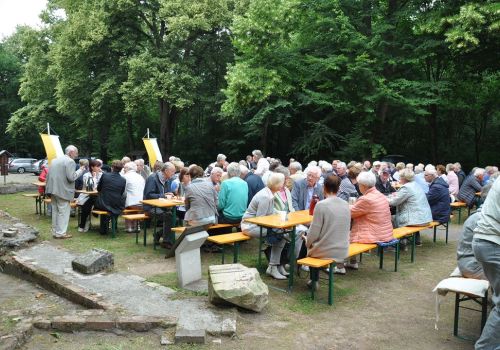 Das alljährliche Wahner Treffen – immer am dritten Sonntag im Juni – fand 2018 am 17. Juni statt. Viele Altwahner, deren Verwandte und Bekannte, sowie interessierte Gäste von nah und fern , nahmen daran teil. Das Treffen startete gegen 15.00 Uhr mit einer gemeinsamen heiligen Messe im Rund der wieder freigelegten St. Antonius Kirche. Anschließend wurden bei Kaffee und Kuchen viele Erinnerungen wach und fast immer ging es dabei: “ … öwer dai gaude oalde Tied“.